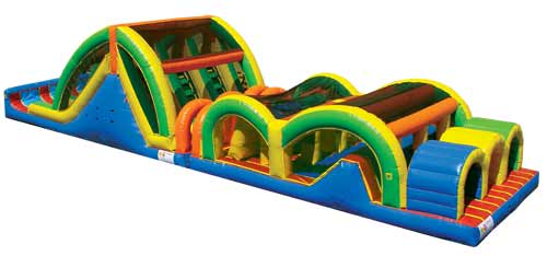 New Jersey’s only Mega Thrill 3 lane obstacle course where three players can simultaneously race against each other. Less wait times and a quicker turn around makes this obstacle course stand out above the rest. Challengers rush into the tunnel entrance, make their way around a variety of foam pillars and horizontal tubes, and rush past inflatable barriers. Once escaping the challenging obstacles, participants make their way to the top of the rock wall staircase, and speed to the exit by sliding down the fun inflatable slide. This is a true one of a kind inflatable racing experience.