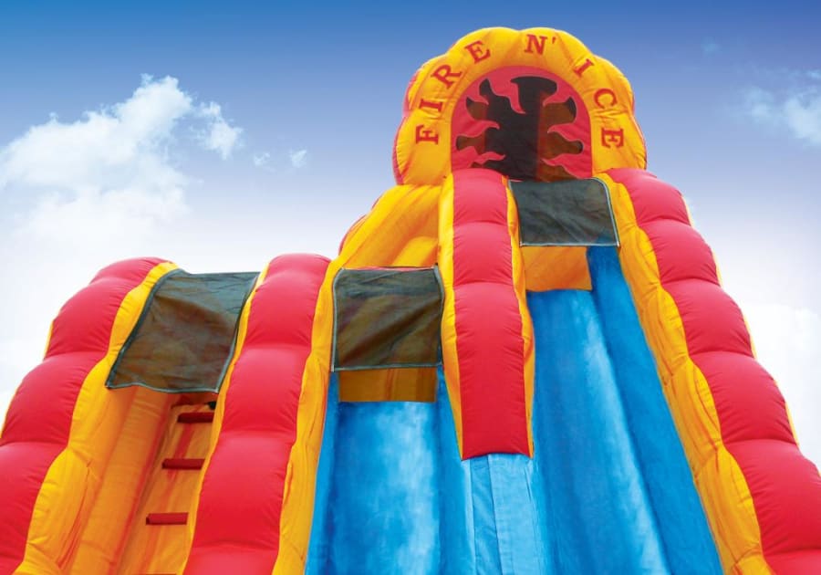 Make a splash at your party with the exciting 20' Fire n Ice Dual Lane Water Slide with Pool! This inflatable slide is perfect for hot summer days, offering a thrilling and refreshing experience for kids and adults alike. Take a ride down its 20' high lane or its 16' high lane, both curving and landing into a splash pool! Whether you're hosting a backyard birthday bash, a corporate event, or a community gathering, this water slide is sure to be a hit.
