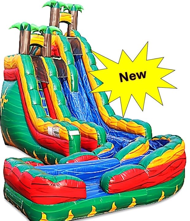 Get ready to dive into a world of excitement and adventure with our 20' Tropical Ice Dual Lane Water Slide with Splash Landing. Perfect for both kids and adults, this vibrant and colorful water slide brings the thrill of a tropical paradise right to your backyard. T whether you're hosting a birthday party, a family reunion, or just a sunny day gathering, this water slide is your ticket to creating unforgettable memories.