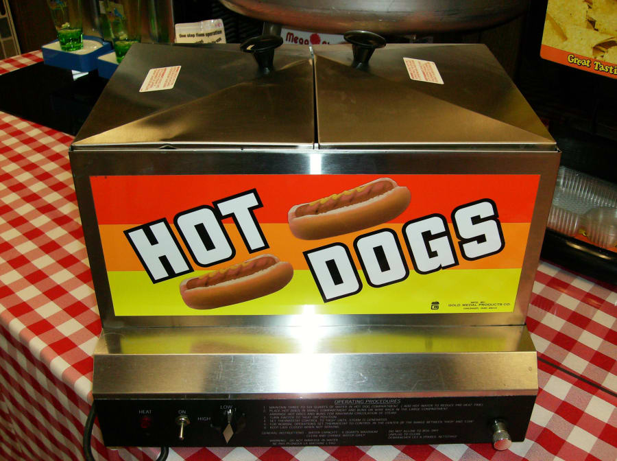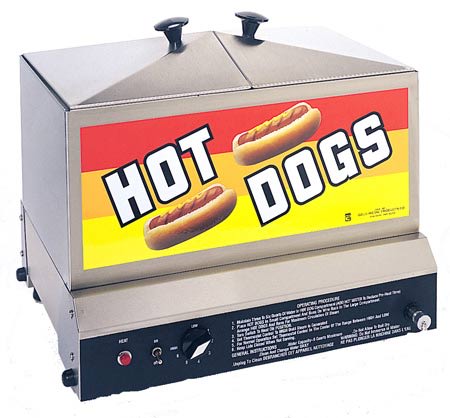 The “Steamin Demon” hot dog machine is truly the world’s best hot dog steamer. Cooks up to 85 hot dogs and 35 hot dog buns at the same time! Very simple to operate, fill with water and turn it on, add your hot dogs and hot dog buns and minutes later you are eating. You’ll feel like you stepped into the ballpark with the fabulous smell of steamed franks. This machine will keep your hot dogs and hotdog buns warm and ready during the entire party.