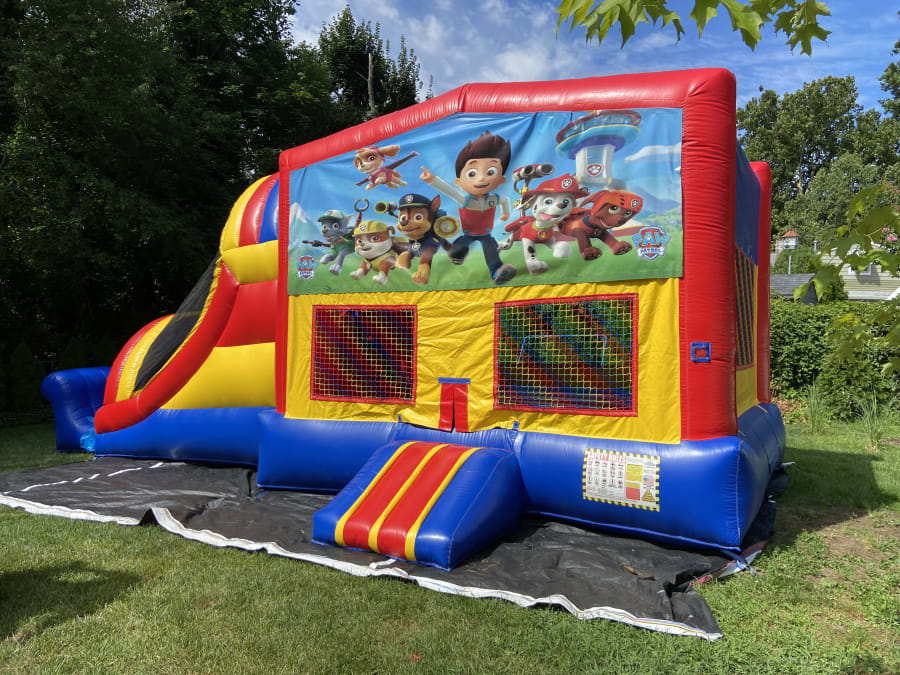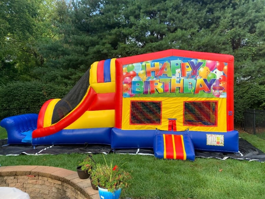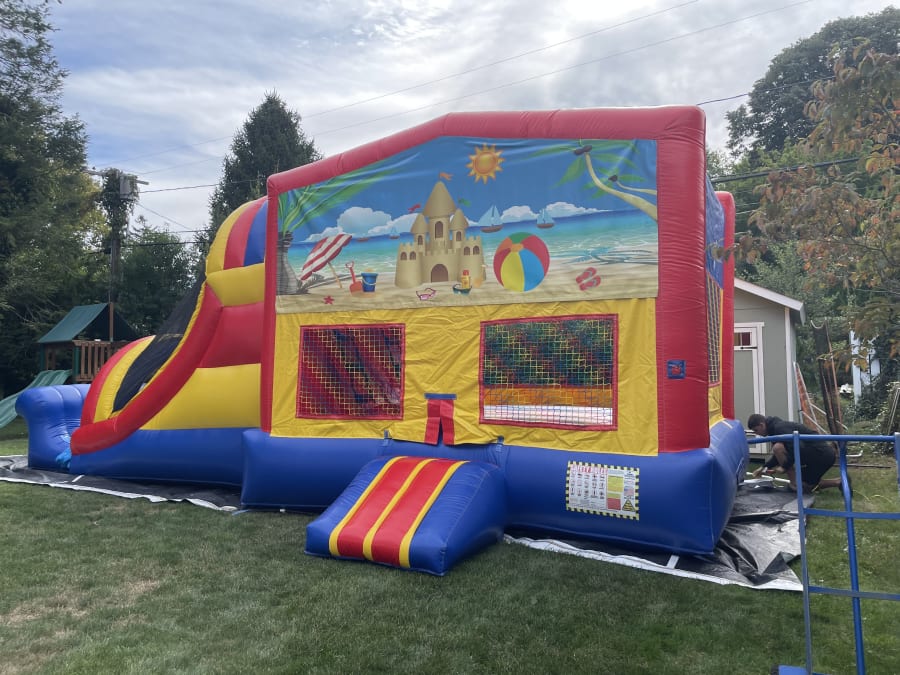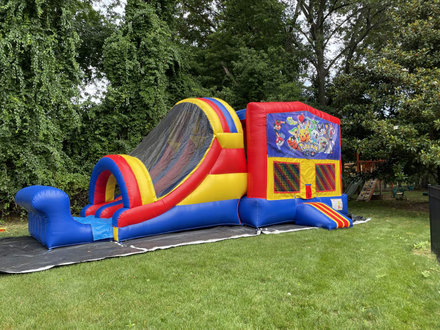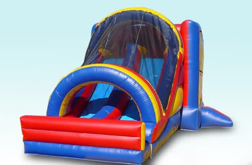 Looking for an epic addition to your event? Check out our Dual Lane Jump-n-Slide Combo! 🎉Our Dual Lane Jump-n-Slide Combo is the ultimate entertainment package, featuring a full moon bounce with a basketball hoop inside for some friendly competition 🏀. But the excitement doesn't stop there! With the dual lane slide, you can race your friends down to the bottom for an adrenaline-pumping experience like no other. It's pure fun!