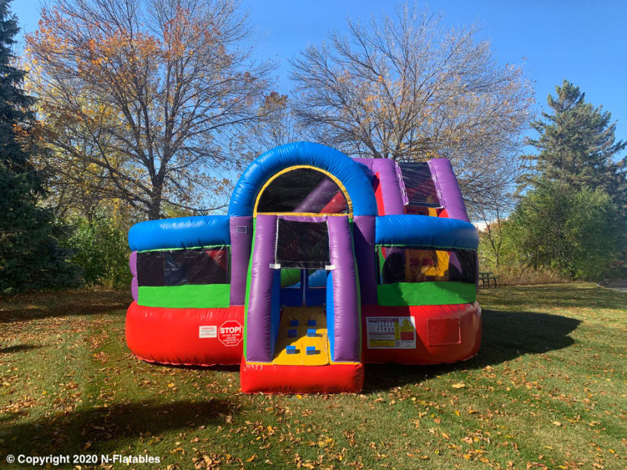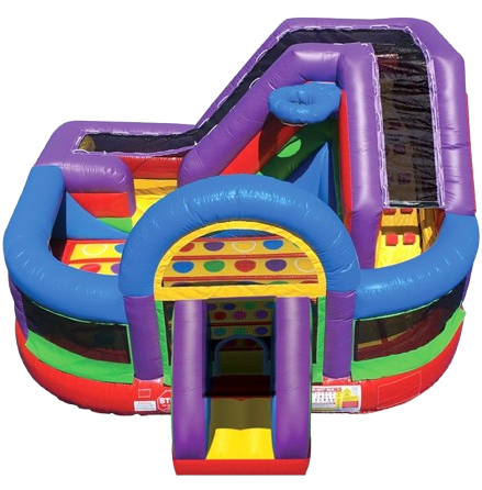 With its vibrant colors the Twisting Combo stands out as a top choice for entertainment rental. It is perfect for backyard fun! Watch as the children play Twister, dunk a basketball (balls not included) slide down the slide or bounce for hours.