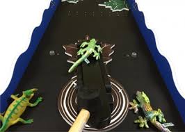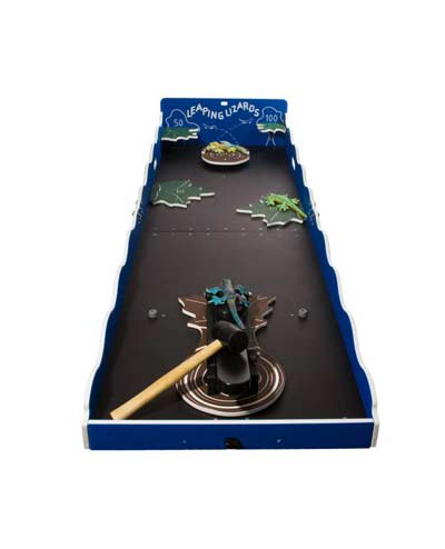 Your Leaping Lizard carnival game rental includes game board, rubber mallet, 3 lizards.