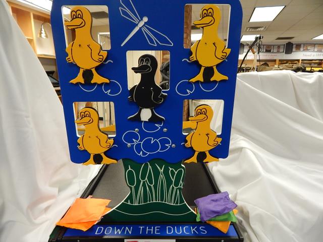Your Down the Ducks carnival game rental comes with bean bags to knock over the ducks.