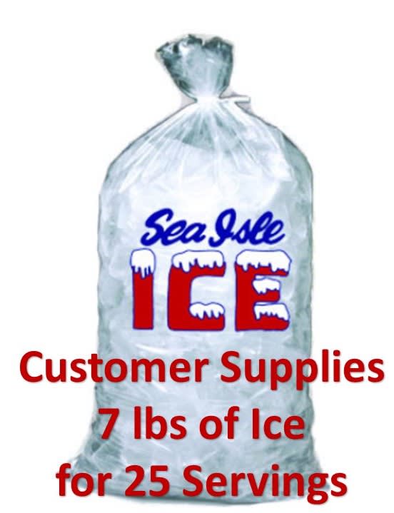 Your rental INCLUDES a 25 ft extension cord and all the supplies (25 cups and assorted syrup flavors) for 25 huge servings. Additional servings (25) can be purchased for $10. Ice NOT included. 7 lbs. of ice needed for 25 servings.