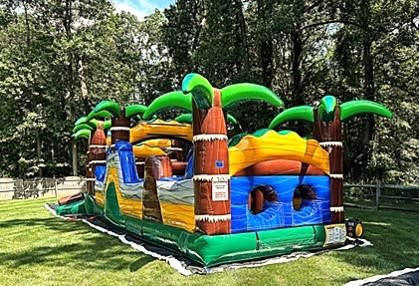 Looking to add a splash of tropical excitement to your next event? The Tiki Dash Obstacle Course is the perfect addition! With a vibrant Hawaiian theme and towering 13' palm trees, this exhilarating course promises endless fun and challenges for kids. 🌺
