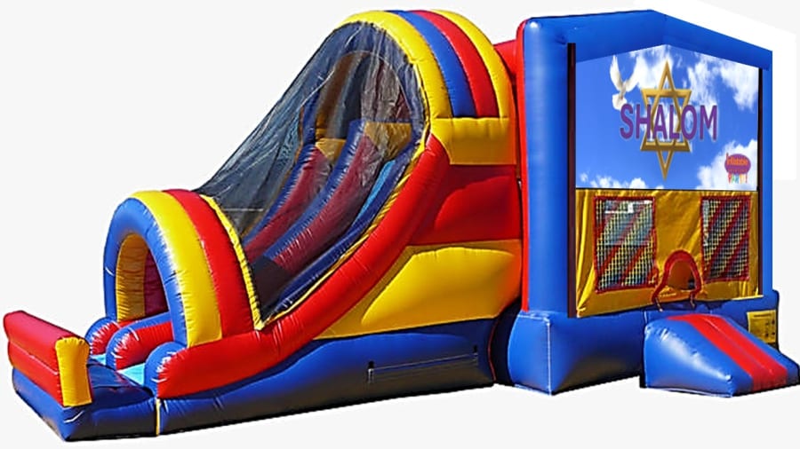 Looking for an epic addition to your event? Check out our Shalom Dual Lane Jump-n-Slide Combo! 🎉Our Shalom Dual Lane Jump-n-Slide Combo is the ultimate entertainment package, featuring a full moon bounce with a basketball hoop inside for some friendly competition 🏀. But the excitement doesn't stop there! With the dual lane slide, you can race your friends down to the bottom for an adrenaline-pumping experience like no other. It's pure fun!