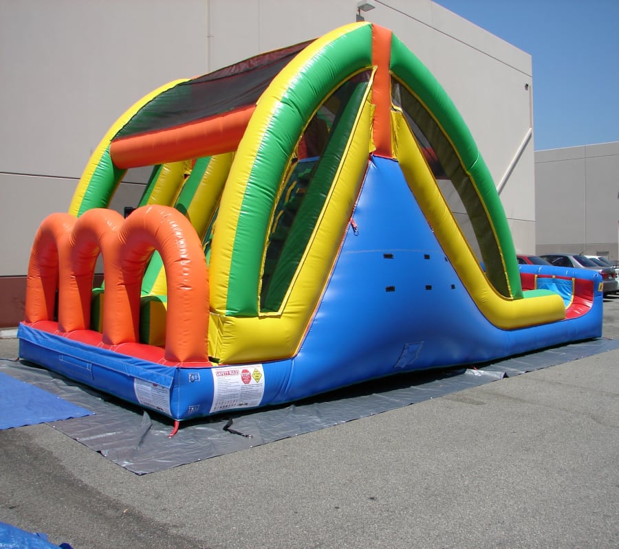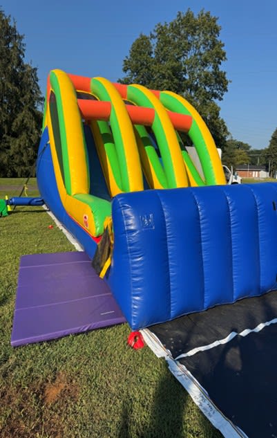 Our 3 Lane Slide is designed to accommodate three participants simultaneously, allowing for non-stop action and excitement. 🏃‍♂️ With a challenging staircase to climb and a slippery slope to slide down, this inflatable attraction guarantees hours of entertainment for all ages.