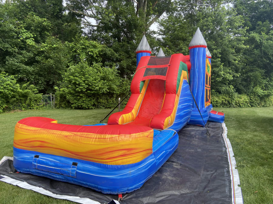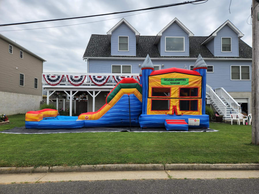 Introducing our Super Combo Castle with Pool, the ultimate inflatable water attraction for your next event! This large inflatable features a full-sized moon bounce attached to a ten-foot slide, providing hours of endless fun for kids of all ages. 🏰
