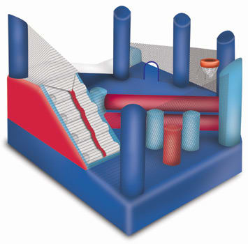 Requires an active water supply with a garden hose that will reach the location of the inflatable. (We can provide a 50' hose if requested)