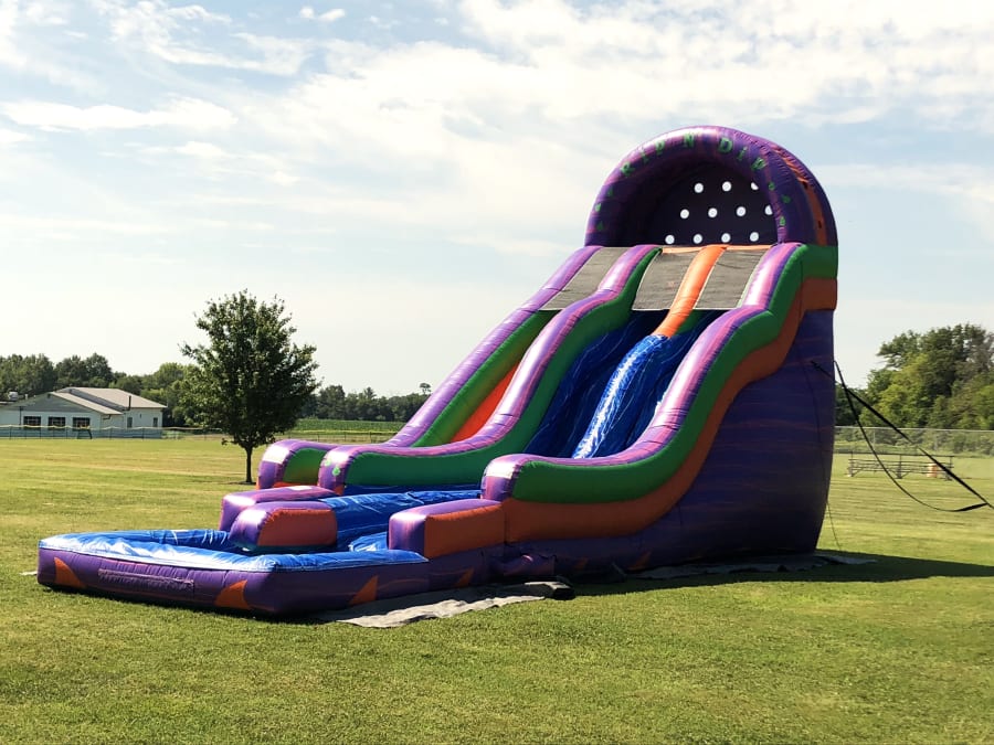 Requires an active water supply with a garden hose that will reach the location of the inflatable. (We can provide a 50' hose if requested)