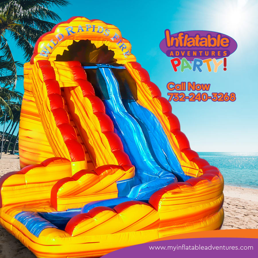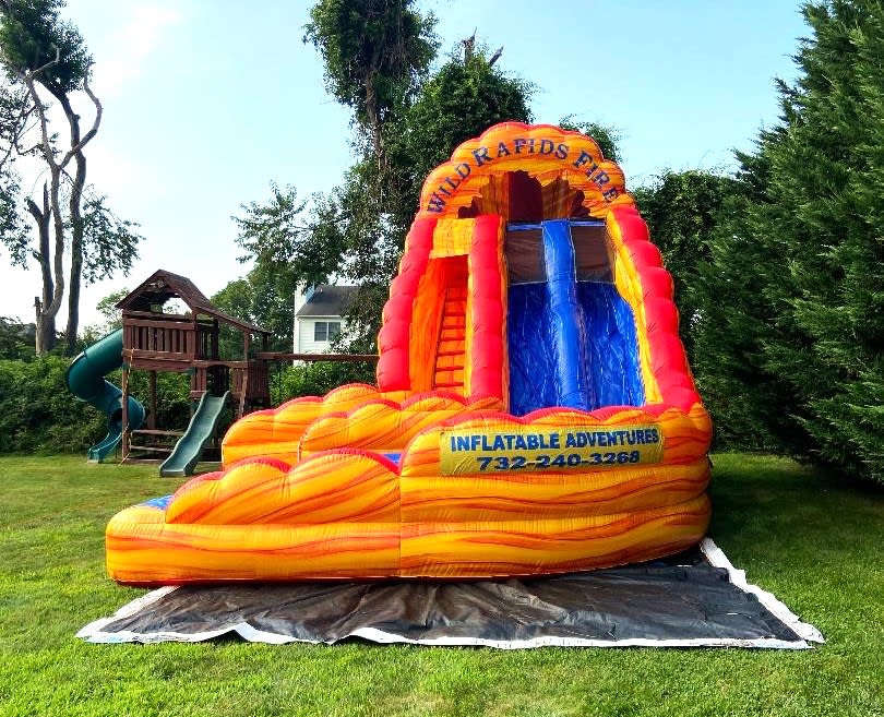 Available for delivery in Ocean and Monmouth Counties. Make a splash at your next event with the 18' Wild Rapids Fire Dual Lane Water Slide with Pool!
