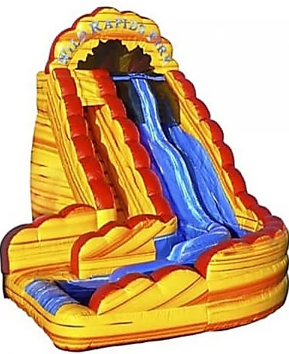 Experience the thrill of racing down two side-by-side lanes as you slide into the refreshing pool at the end. With its vibrant colors and exciting design, the Wild Rapids Fire Water Slide will be the centerpiece of any party or event.