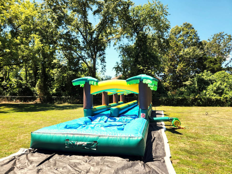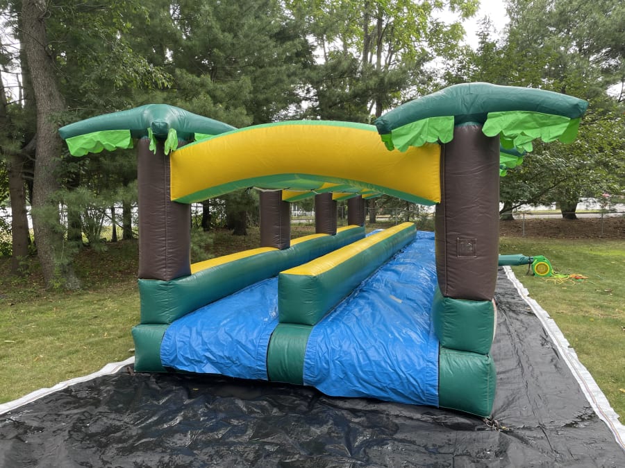 Don't miss out on the fun! Rent the Hawaiian 2 Lane Slip-n-Slide Water Ride today and bring the tropical vibes to your next event. 🎈