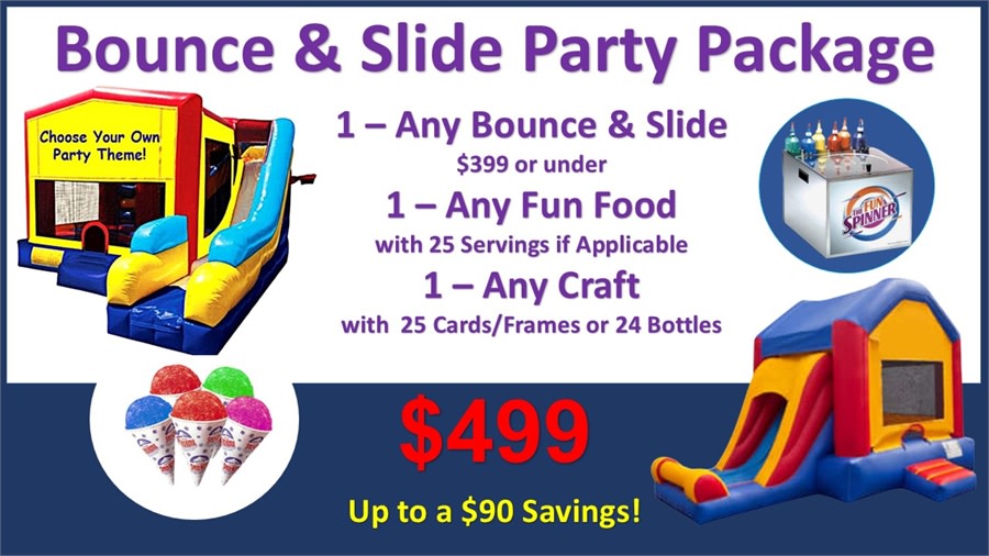 Choose any $369 to $399 combo, any fun food machine and any craft for one low $499 price. RESIDENTIAL PARTIES ONLY.