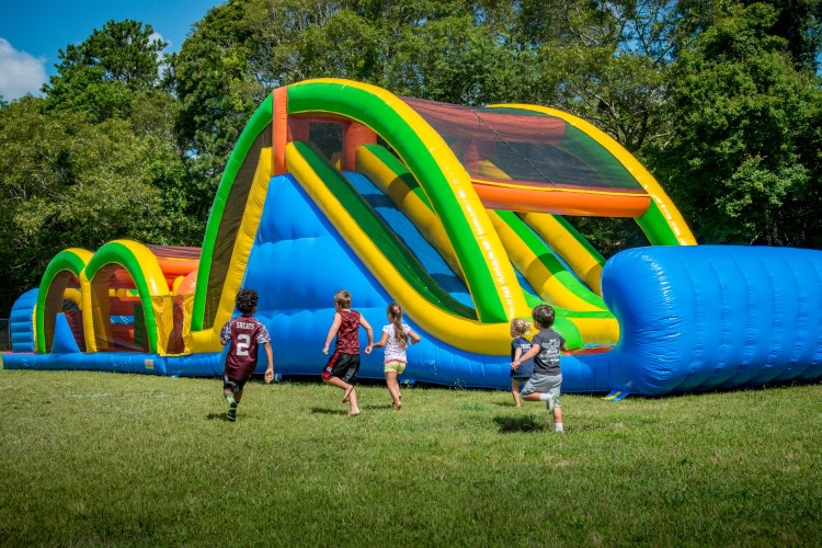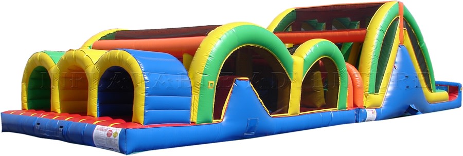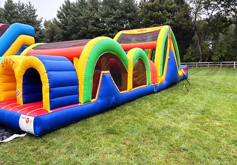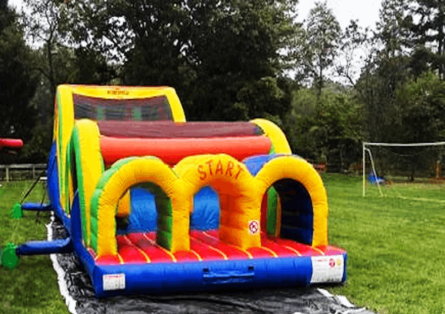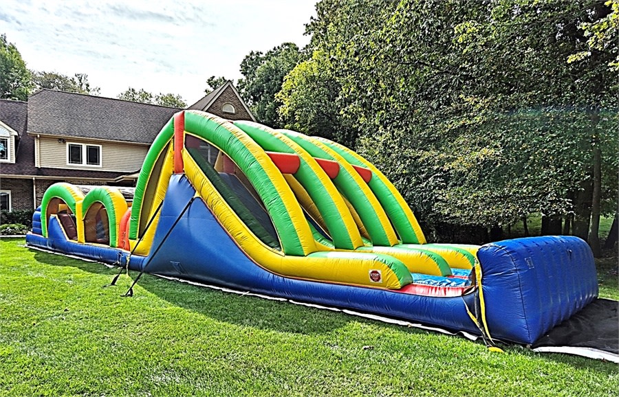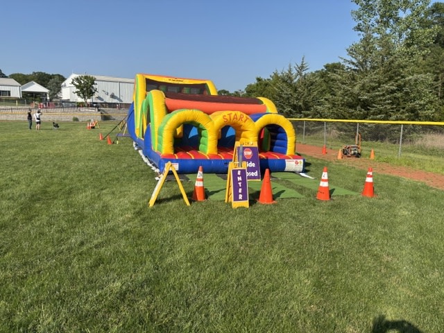 New Jersey’s only Mega Thrill 3 lane obstacle course where three players can simultaneously race against each other. Less wait times and a quicker turn around makes this obstacle course stand out above the rest. Challengers rush into the tunnel entrance, make their way around a variety of foam pillars and horizontal tubes, and rush past inflatable barriers. Once escaping the challenging obstacles, participants make their way to the top of the rock wall staircase, and speed to the exit by sliding down the fun inflatable slide. This is a true one of a kind inflatable racing experience.